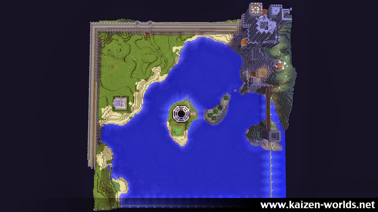 The wall with walking view area is shown top left, the spawn castle is taking shape top right, spawn point is right in the middle and the green grass part will be the shops and houses.